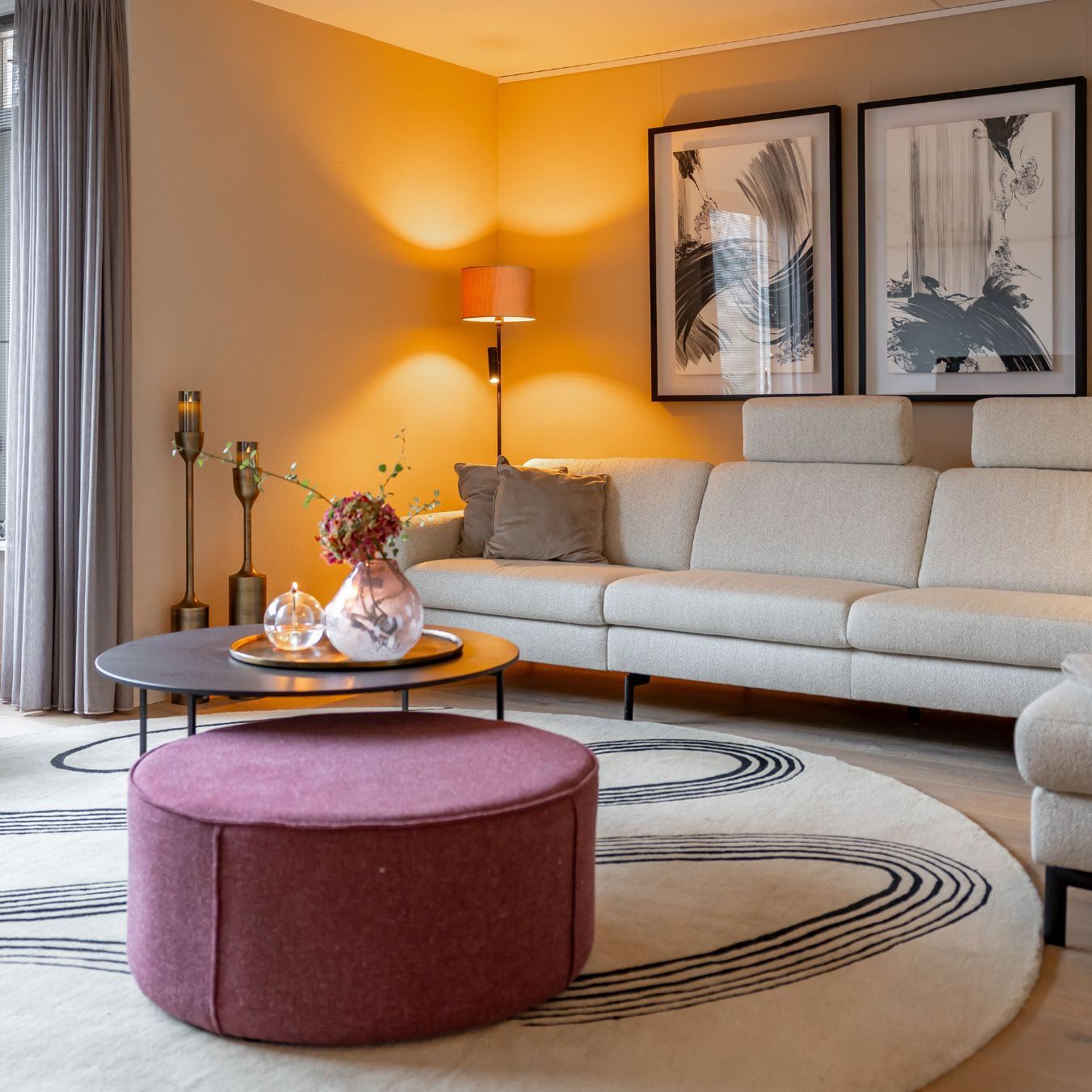 Samen hebben we gekeken naar hun wensen, leefstijl en favoriete kleuren. Rode tinten speelden een grote rol in hun vorige interieur, maar voelden nu te fel aan. Door te kiezen voor een warmere, subtielere nuance hebben we een rustige basis gecreëerd die alle elementen verbindt en sfeer geeft aan de ruimte.